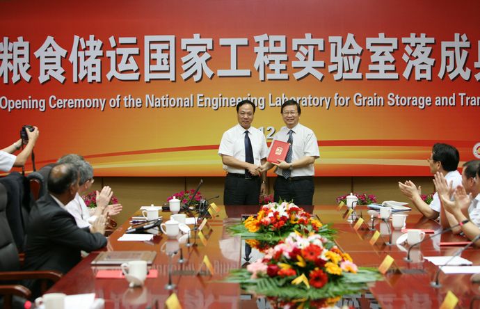 2012年9月3日,在我校隆重举行粮食储运国家工程实验室落成典礼后,国家粮食局吴子丹副局长正式受聘担任av女优