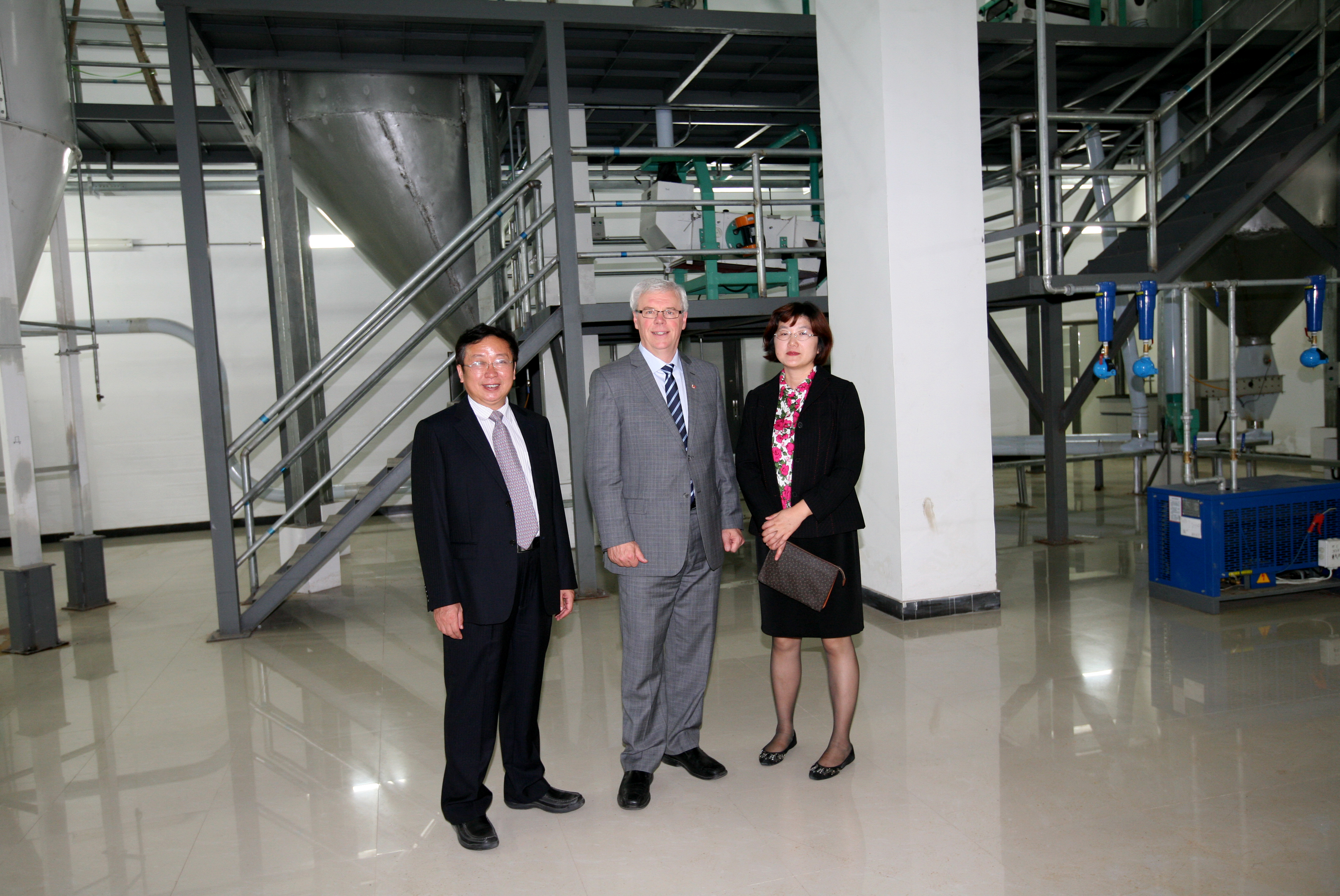 鞠兴荣副校长陪同Greg Selinger省长一行参观稻谷预处理室