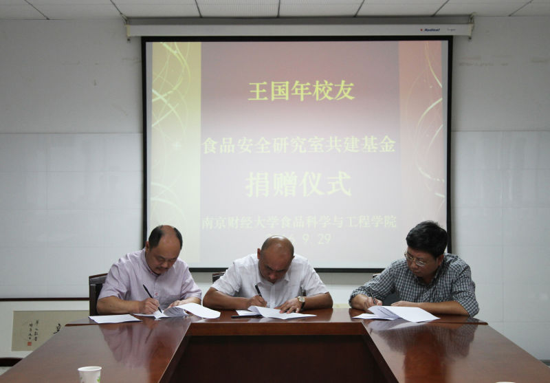 9月28、29日下午,原南京粮食经济学院粮油储藏专业83级校友、侨基集团董事长曹昌银捐赠20万元,87级校友、上海鑫淳企业管理咨询有限公司总经理张力加捐赠10万元设立奖学奖教基金,91级校友、安徽池州市九华船务有限公司董事长王国年捐赠10万元设立食品安全研究室共建基金。捐赠仪式在仙林校区工科楼二楼会议室举行。av女优