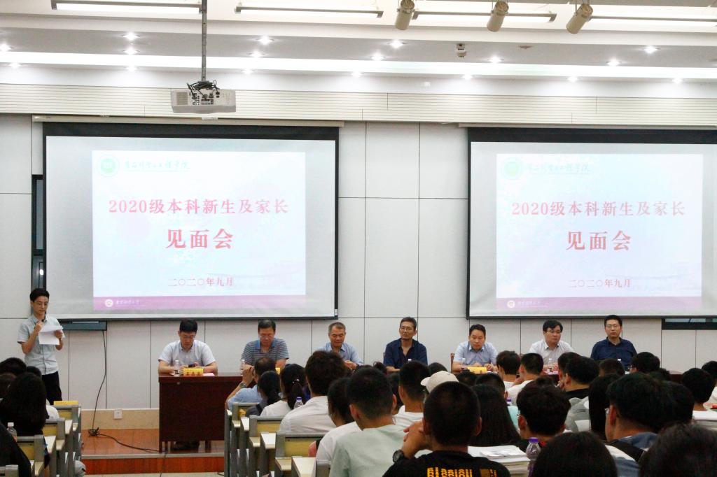 在食品科学与工程楼阶梯教室举行2020级本科新生见面会,并在线上向新生家长进行直播。全体院领导,教师代表、学工系统老师和2020级新生参加了会议,会议由院党委副书记周进进主持。