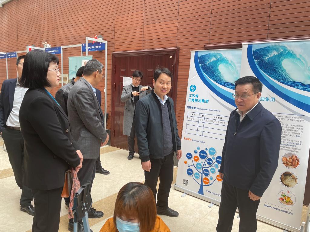 现代粮食工程与营养健康产业学院招聘会”在我校仙林校区工科楼顺利举办。江苏省粮食和物资储备局局长夏春胜,我校党委常委、副校长邱伟芬等领导来到招聘会现场指导,详细了解了招聘会的组织筹办情况,鼓励毕业生要积极展示自己,发挥好专业特长,把握好就业机会。