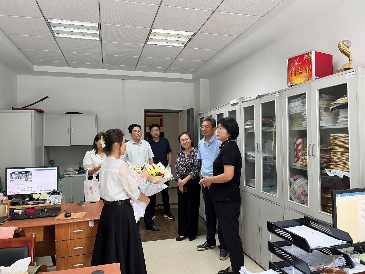 邱伟芬副校长来到食工楼237办公室与老师们亲切交谈,详细了解大家的工作和生活情况,听取了情况介绍。她充分肯定了老师们为学校发展作出的工作实绩,代表学校为教职工代表仝瑶老师送上鲜花和慰问金,转达了学校在教师节来临之际对老师们的关怀和慰问,感谢老师们为学校事业发展作出的贡献,并致以节日的问候。