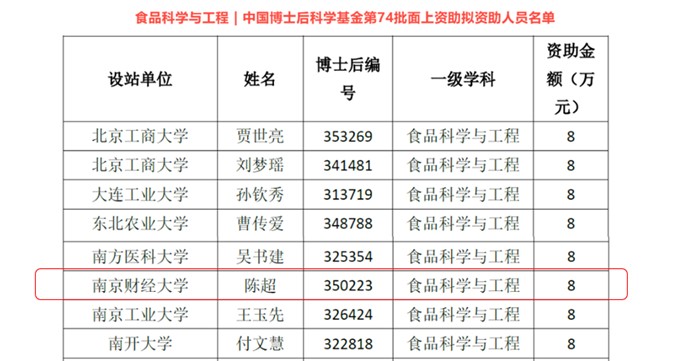 近日,中国博士后科学基金会公布了第74批面上项目资助人员名单,av女优