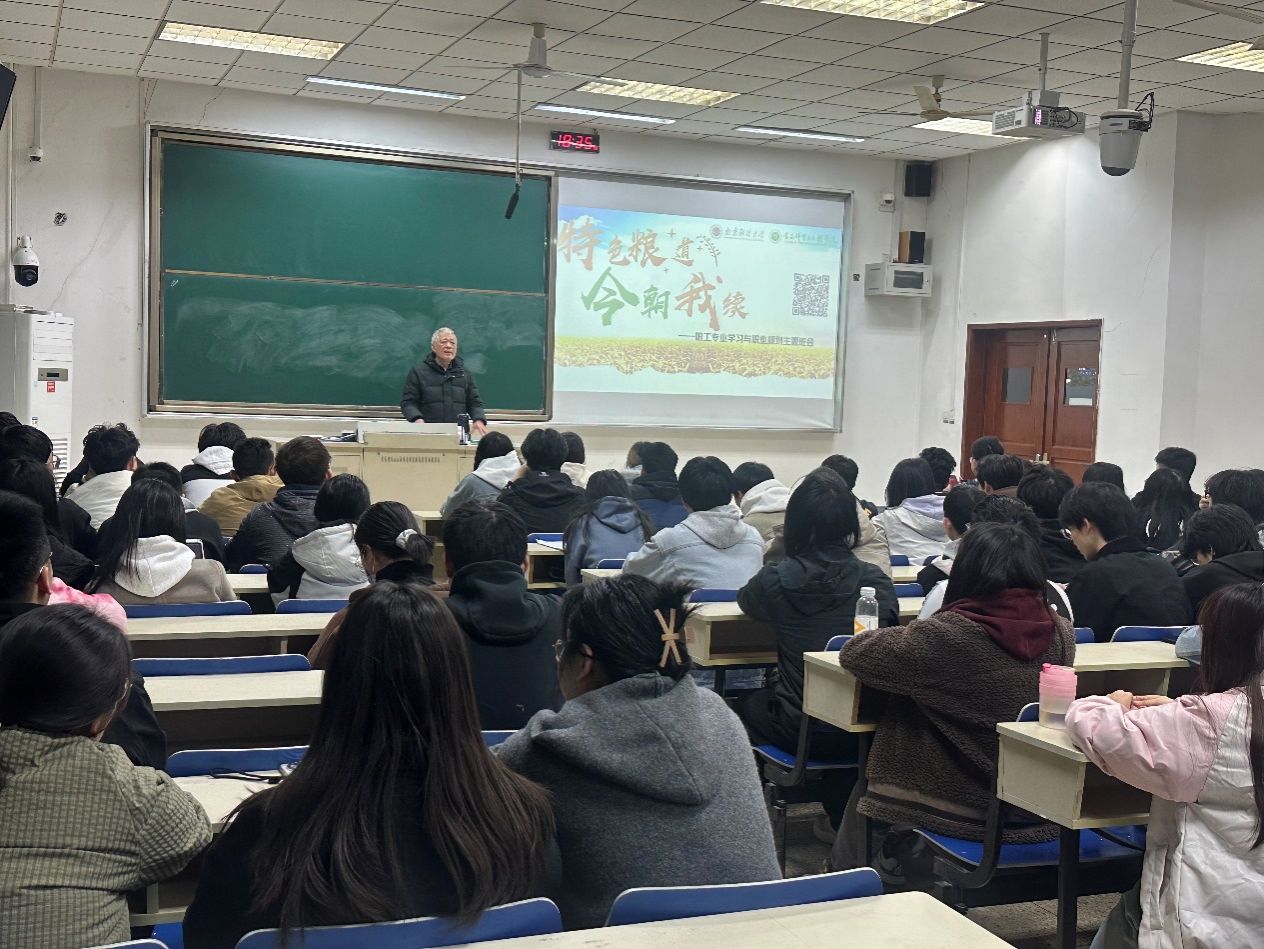 3月28日,学院组织开展的“五老进课堂”系列活动迎来特别一课。学院退休教师、深耕行业四十余年的老专家杨国峰教授重返讲台,以“特色粮道,今朝我续”为主题,为百余名学子讲述中国粮工的使命传承。