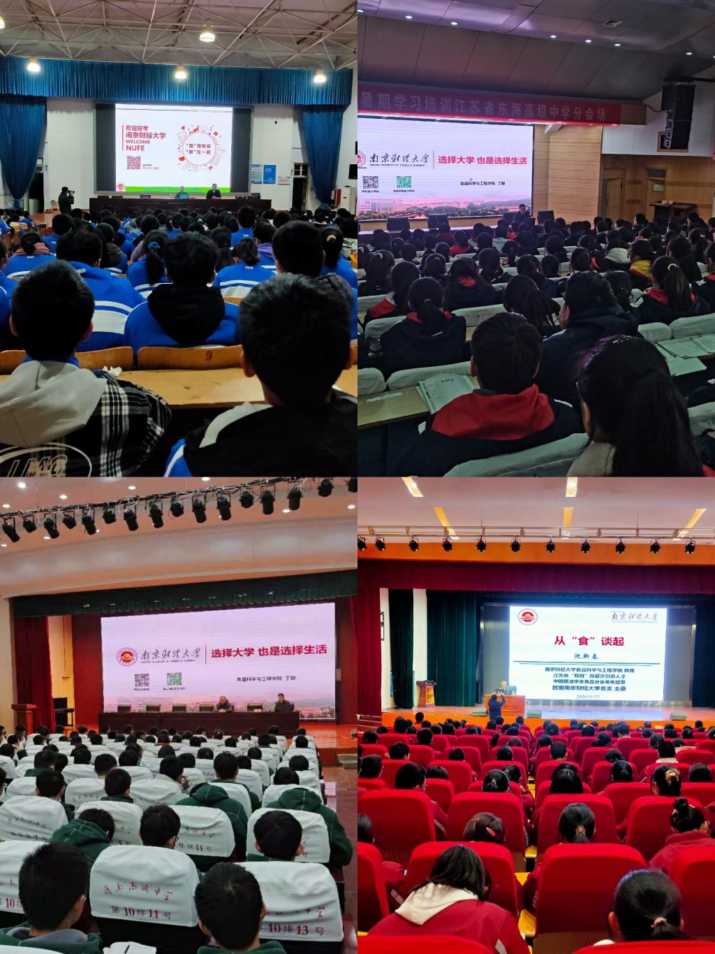 教授沈新春、学工办主任石晶晶赴赣榆高级中学和海州高级中学开展“从‘食'谈起”科普讲座,受到中学师生的热烈欢迎。在讲座中,沈教授以“初心和梦想”为切入点,向同学们讲述了他的成长经历以及他作为一名食工人的初心和梦想。在两场讲座过程中,沈新春教授不断与同学们互动,向同学们展示了食品科学与现代科技的融合,激发了同学们对食品学科的兴趣。每场讲座最后,沈新春教授都向同学们介绍了我校相关学科的优势和特色,同时鼓励同学们要树立远大理想,不断追求卓越,用奋斗书写无悔的青春!