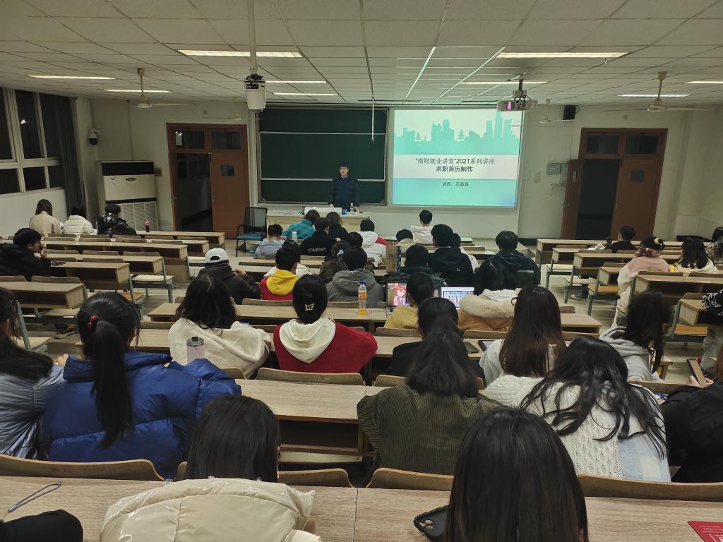 主办,校职业发展与就业协会协办的,南财就业讲堂系列讲座之 “简历制作与面试技巧”于12月3日18点至21点30分在仙林校区博远楼103教室顺利举办。我校150余名学生参加了此次讲座。