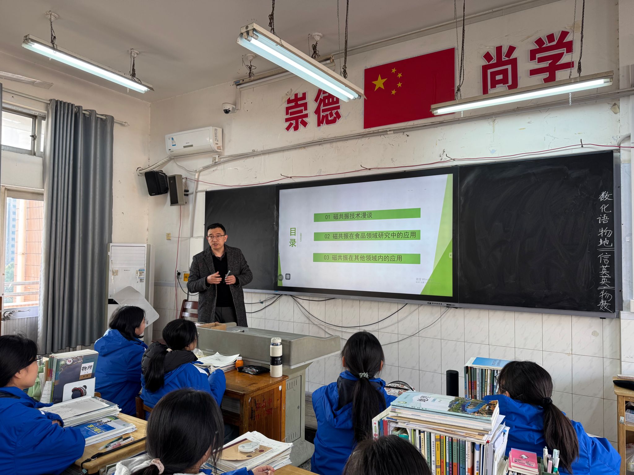 吴迪副教授受邀走进江苏省赣榆高级中学校园,以“有‘磁’有‘味’——磁共振与食品科学”为主题,为该校学子带来了一场深度与趣味并存的精彩金课,为怀揣梦想的学子们打开了一扇通往科学殿堂的大门。