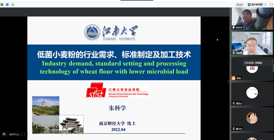 邀请,江南大学朱科学教授作了题为“低菌小麦粉的行业需求、标准制定及加工技术”的线上学术报告,学院部分教师和研究生参与了本次报告会,报告会由学院副院长汤晓智教授主持。