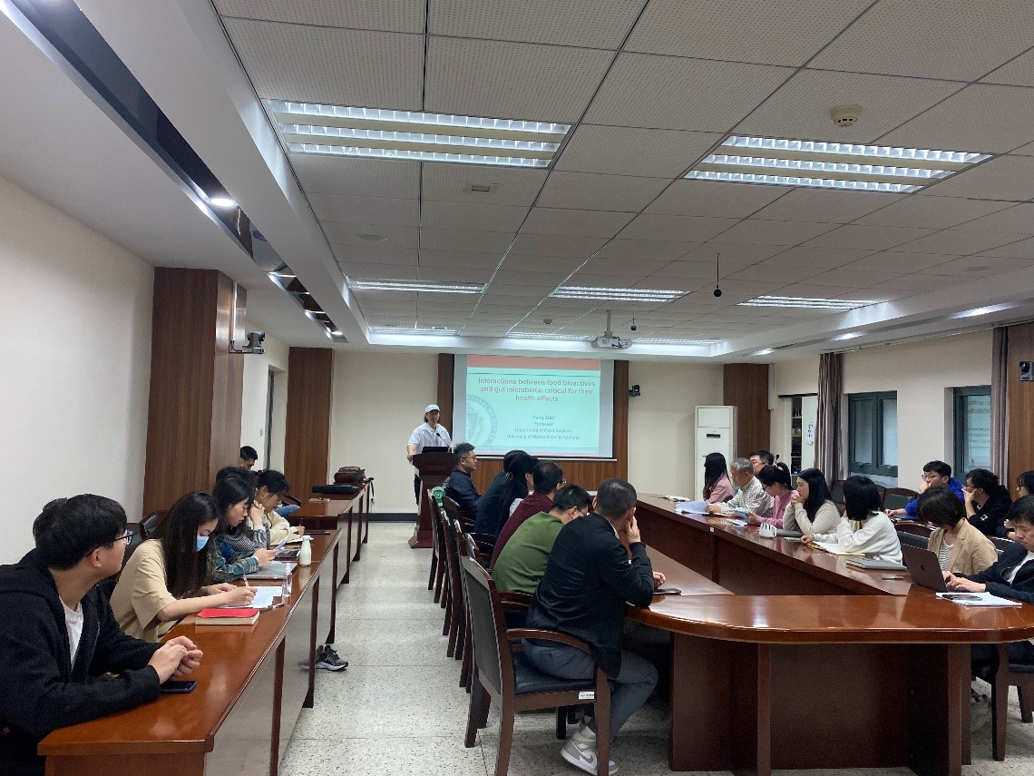 邀请,美国马萨诸塞大学阿默斯特食品科学系教授肖航在食工楼211会议室作了题为“Interplay between food and gut microbiome: critical roles in human health”的学术报告,学院部分教师及研究生参加讲座。讲座由学院院长方勇教授主持。
