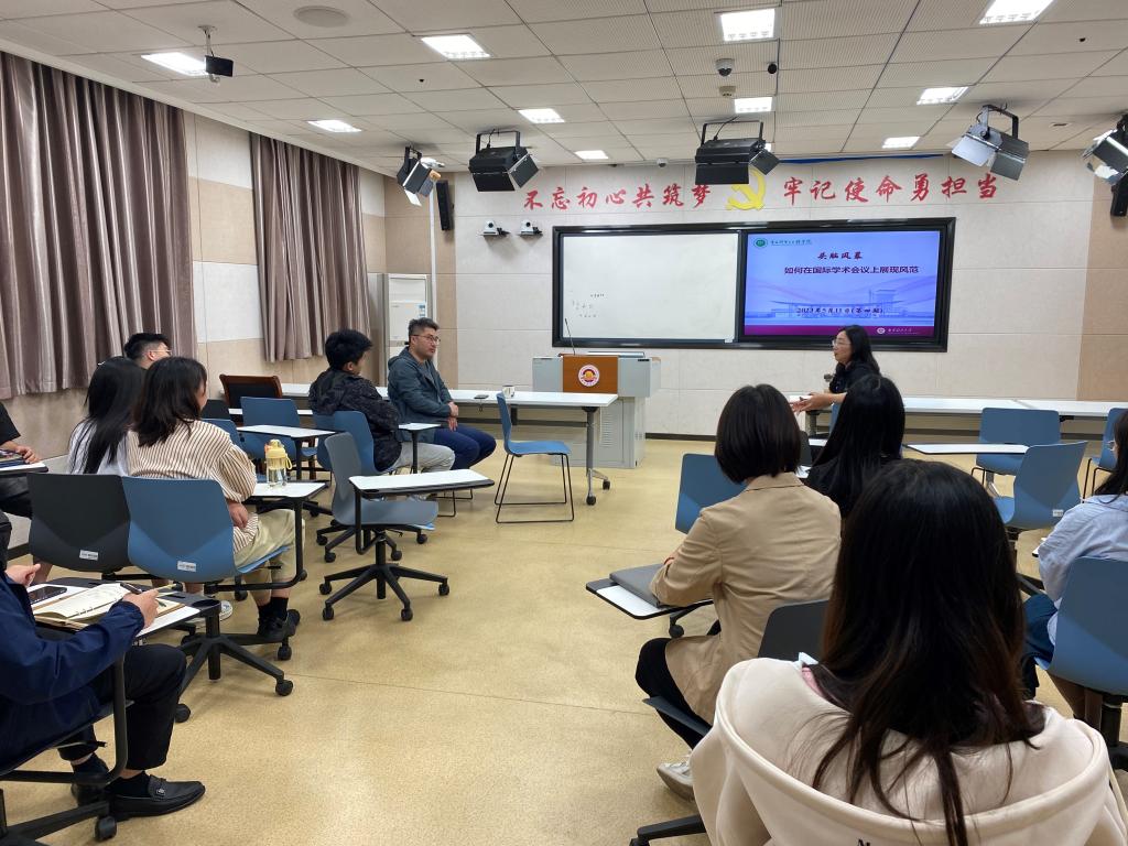 随后,开展了主题为“如何在国际学术会议上展现风范”的头脑风暴研讨会。会议上,刘琴教授结合自己参加国际会议的亲身经历,给大家详细讲解了参加学术会议的重要性和注意事项,提出国际化交流与合作是av女优