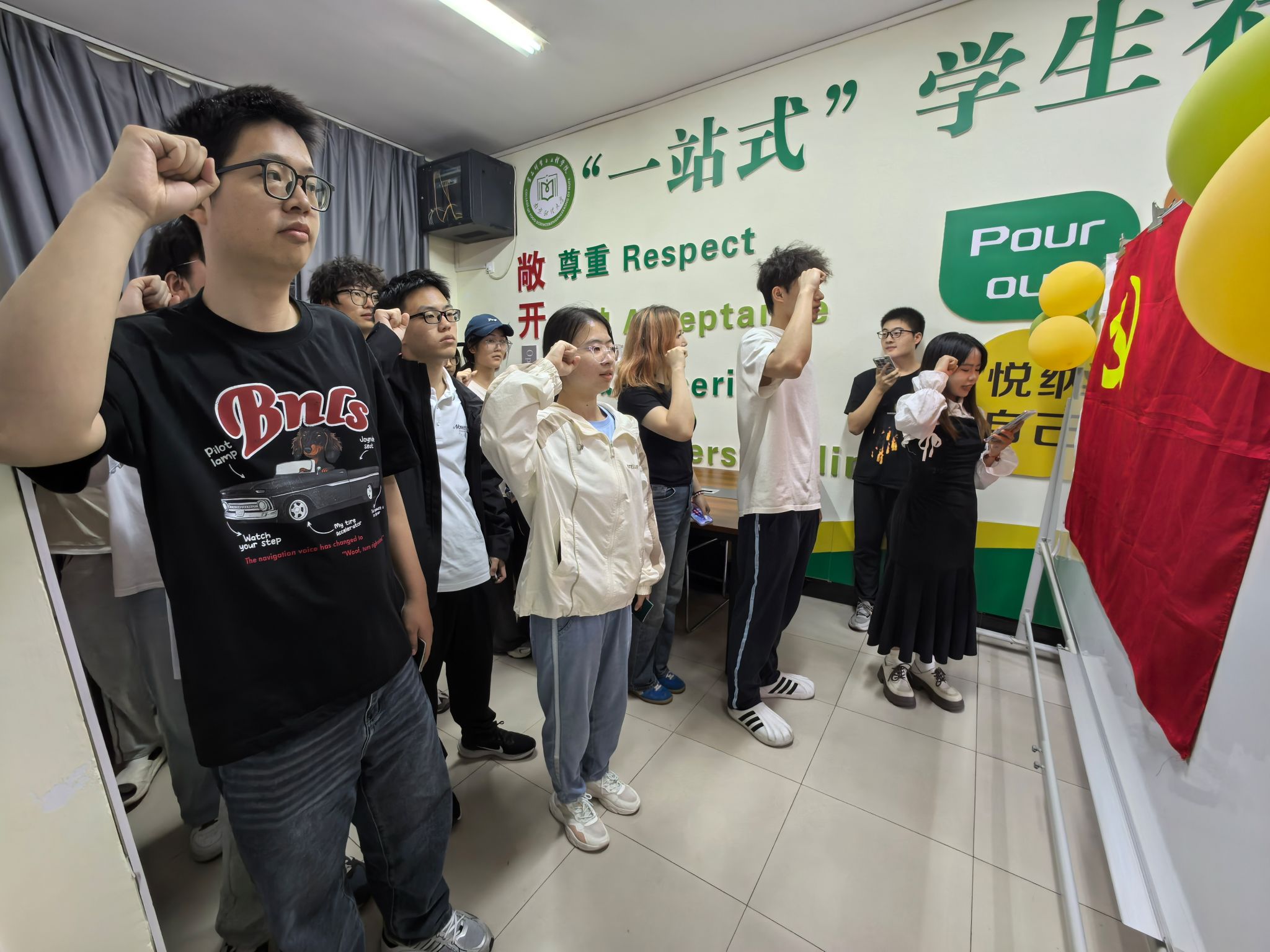 在北苑14号站“一站式”学生社区举行2025年新团员入团仪式。27 名优秀青年学子怀揣理想、肩负荣光,在鲜红团旗下庄严宣誓,光荣加入中国共产主义青年团,为团组织注入朝气蓬勃的青春动能。