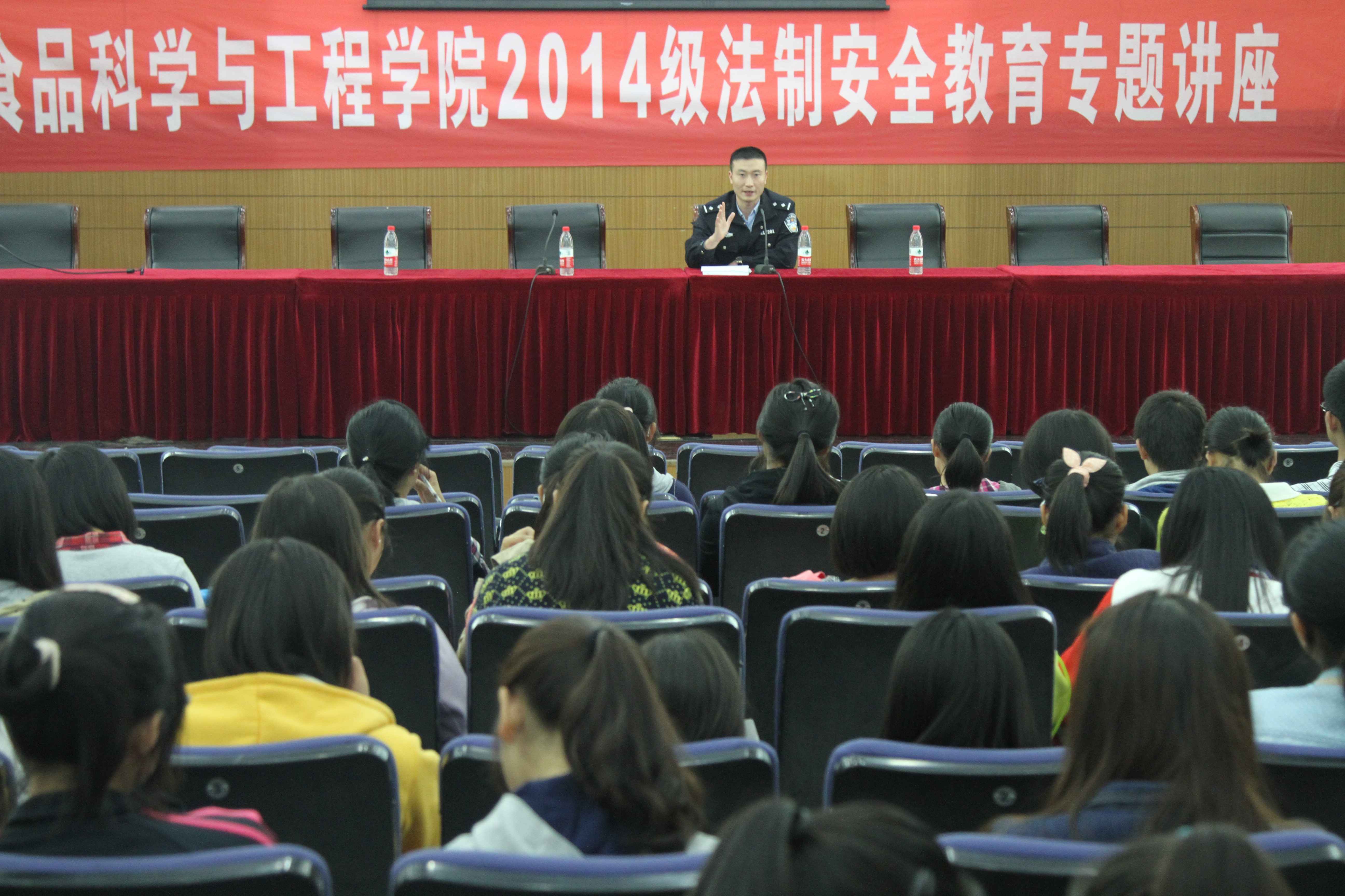 讲座最后,曹警官祝福食工院大一新生生活平安,学习顺利。黄书记代表学院向曹警官表达了感谢。伴随着同学们热烈的掌声,此次法制安全教育讲座圆满结束。