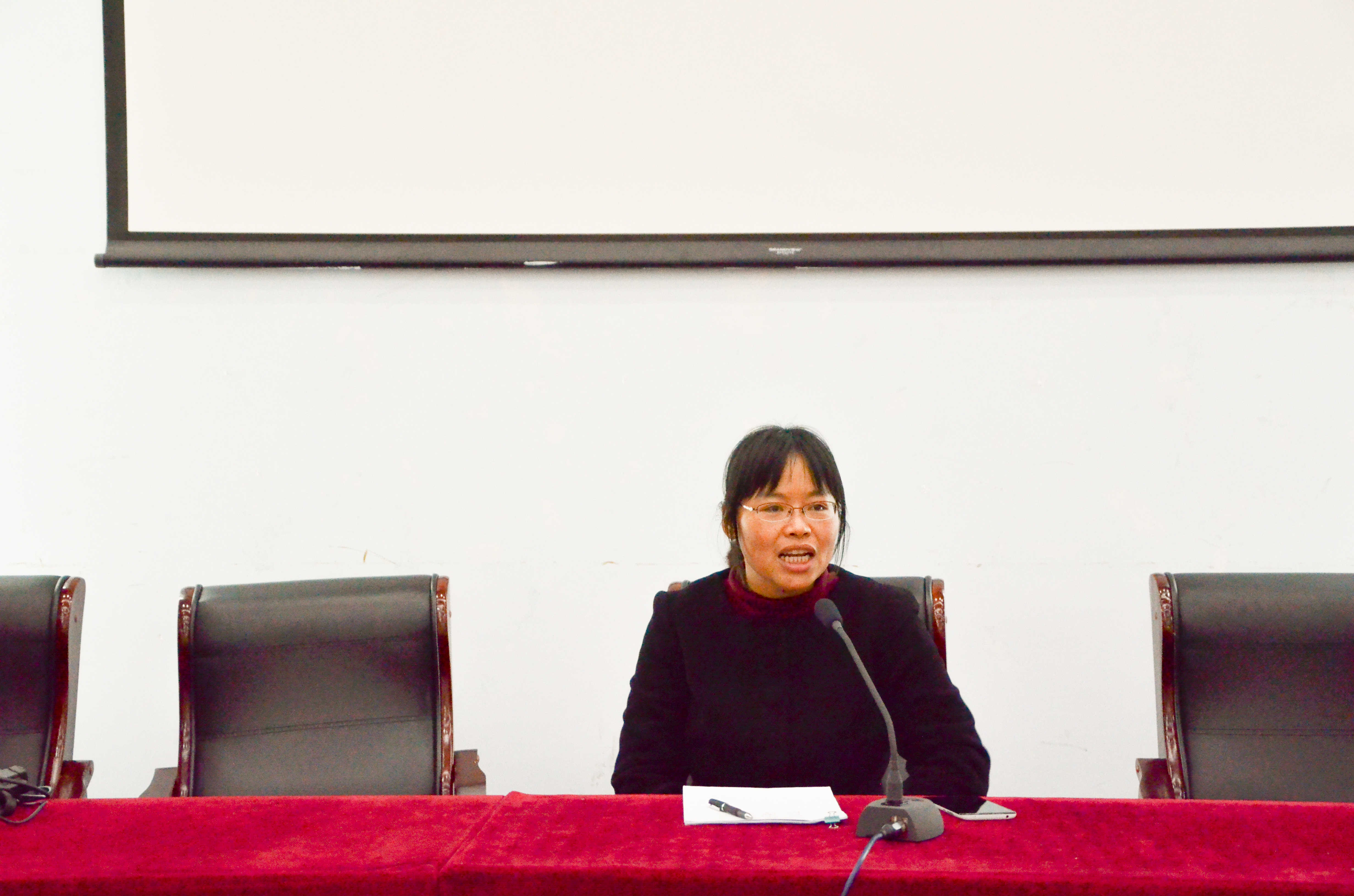 于经济学科楼报告厅举办2014级新生入党指导讲座,讲座由院学工秘书丁爱凤老师主持召开。