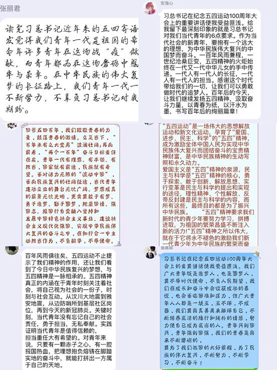 师生通过线上线下多种方式,深入学习、交流讨论,他们纷纷表示,要牢记习近平总书记和娄勤俭书记的寄语,继承和发扬五四精神,为推动学校加快高水平财经大学建设、为实现中华民族伟大复兴的中国梦贡献青春力量!
