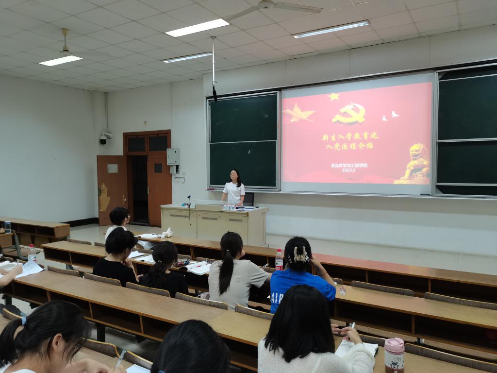 在仙林校区德业楼116开展2023级新生入学教育之党团基本知识介绍,学院本科生党支部书记周文姝老师主讲。