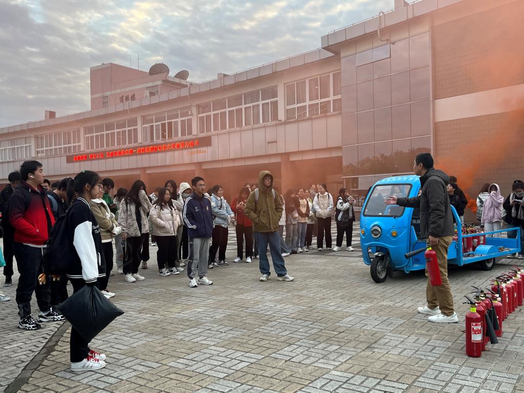 保卫处牵头,带领2023级新生进行应急逃生演练,并向同学们讲解了灭火器的相关使用方法。