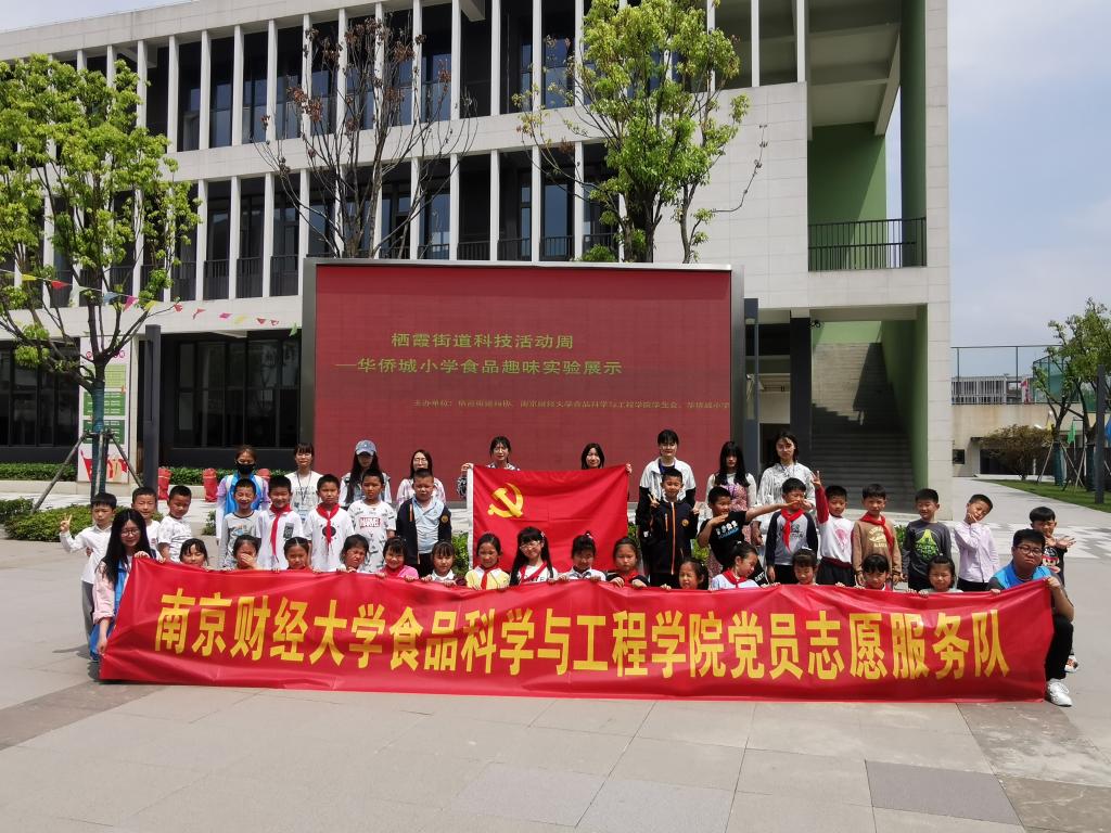 食工学院党员志愿服务队学生党员们和小朋友们合影