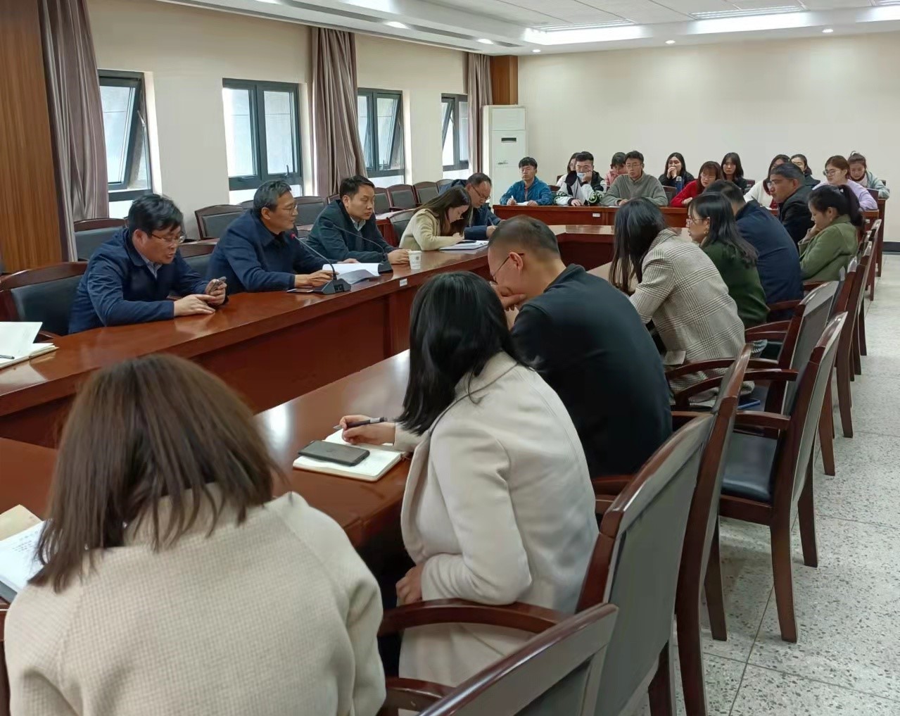 许文彪书记领学《中国共产党统一战线工作条例》(以下简称《条例》)文件精神。他从《条例》修订的重要意义、《条例》新修订的主要特点两个方面带领与会人员共同学习新修订的中国共产党统一战线工作条例。她指出新修订的《条例》相关表述更加具体、要求更加明确、指向更加精准。《条例》的修订和实施,对于巩固和发展最广泛的爱国统一战线,为全面建设社会主义现代化国家、实现中华民族伟大复兴的中国梦提供广泛力量支持,具有重要意义。