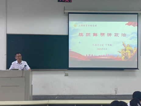 丁书俊老师首先向大家介绍政治建设的重要性,习近平总书记强调,党的政治建设是党的根本性建设,决定党的建设方向和效果。二十大报告指出,我们深入推进全面从严治党,坚持打铁必须自身硬,提出和落实新时代党的建设总要求,以党的政治建设统领党的建设各项工作。随后,丁书俊老师从“对‘政治’的理解”、“对‘旗帜鲜明讲政治’的认识”以及“如何旗帜鲜明讲政治”三个方面进行专题党课讲授。讲授过程中,丁书俊老师通过生活实例与通俗易懂的语言,让研究生党员对“旗帜鲜明讲政治”这一主题有了深刻的认识。在党课的最后,丁书俊老师对研究生党员给予了希望与要求,希望研究生党员能够聚焦聚力学习主业,行动上争先锋,要自觉在严谨、廉洁求学治学上做表率、做示范、走在前,为校风、学风建设贡献力量,力所能及的参与或组织集体活动和社会实践,在提升自身综合素质的同时,更好地服务他人,为将来走上工作岗位更好地回报社会、报效祖国做准备。