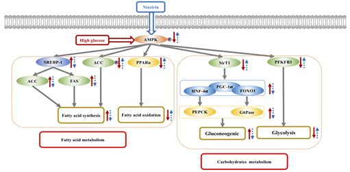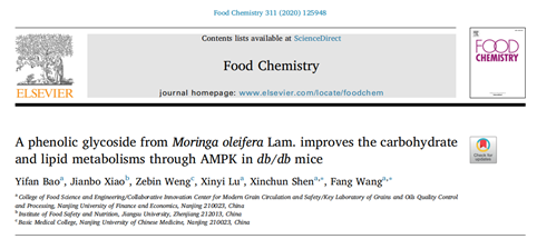 沈新春教授课题组从辣木中制备其特有的活性物质,niazirin。以 IR-HepG2 细胞作为胰岛素抵抗体外细胞模型初步评价 niazirin 的体外降糖活性,再以 db/db 小鼠作为糖尿病动物模型,研究 niazirin 对于胰岛素抵抗、糖脂代谢异常的改善作用机制。相关研究结果以“A phenolic glycoside from Moringa oleifera Lam. improves the carbohydrate and lipid metabolisms through AMPK in db/db mice”为题发表在Food Chemistry杂志上。av女优