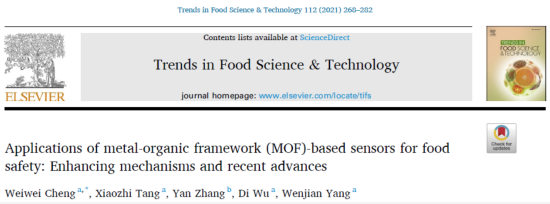 汤晓智教授课题组与河北食品检验研究院张岩研究员联合在食品国际顶尖学术刊物《Trends in Food Science & Technology》(一区,IF=11.077)在线发表了题为 “Applications of metal-organic framework (MOF)-based sensors for food safety: Enhancing mechanisms and recent advances” 的高水平综述论文。该论文以av女优