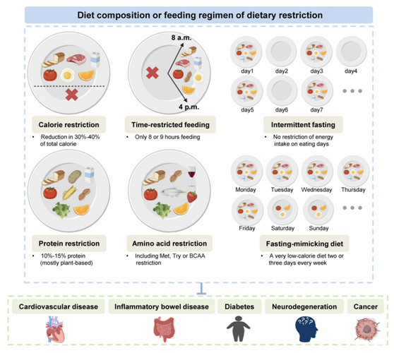 近年来,饮食限制因其对新陈代谢和寿命的诸多有益影响而备受关注。文章从肠道菌群及菌群节律的角度探讨了六种饮食限制模式(卡路里限制、限制时间饮食、间歇性禁食、模拟禁食、蛋白质限制、氨基酸限制)对代谢健康、脑功能和肠道功能的影响。此外,文章阐明了不同饮食限制通过调节肠道稳态来影响代谢健康的潜在机制,并讨论了当前肠道微生物研究的局限性。