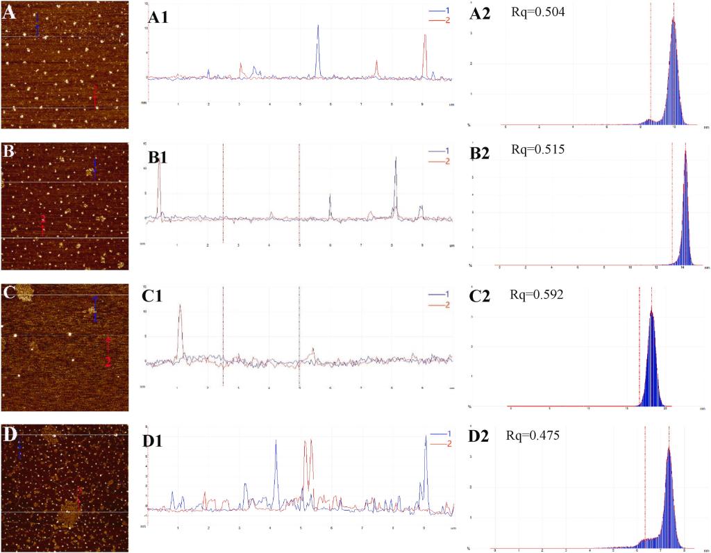 图7 不同FA添加量面筋蛋白样品的AFM图像
